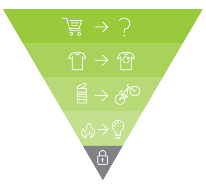 Jo høyere opp i pyramiden du klarer å operere, desto bedre er det for miljøet. Målet bør alltid være å redusere mengden avfall generelt og øke graden av ombruk og gjenvinning.